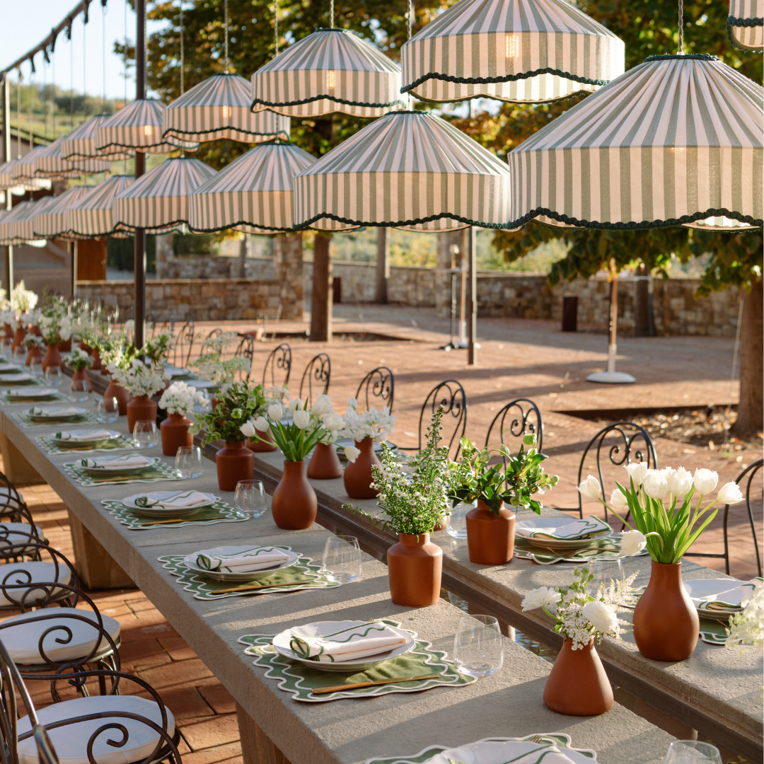 Hand painted plates, custom table linens, festive crackers, hand painted lampshades, monogramming, embroidery, custom seat pads and more ..