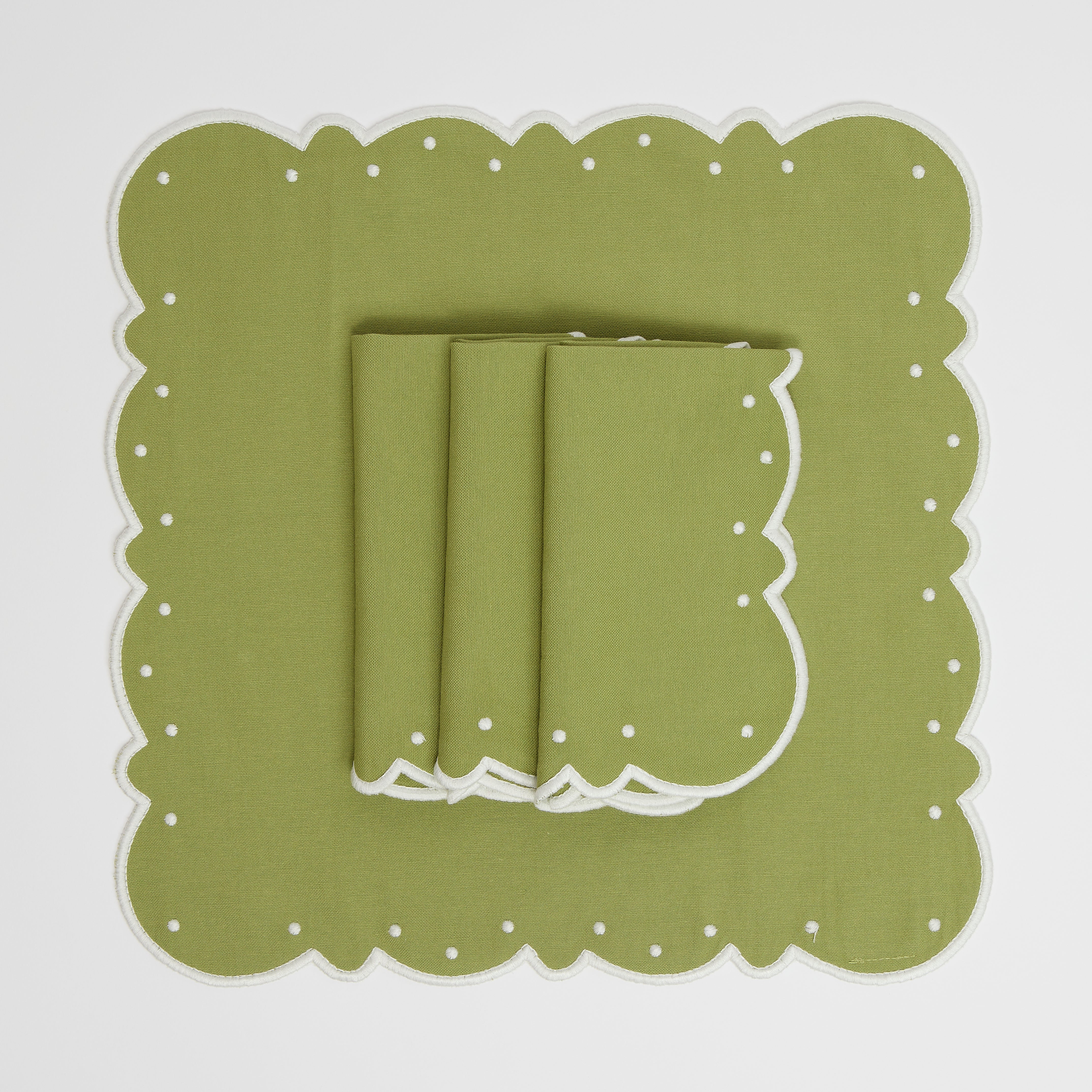 Embroidered Green Scallop Napkin (set of 10) - Preloved