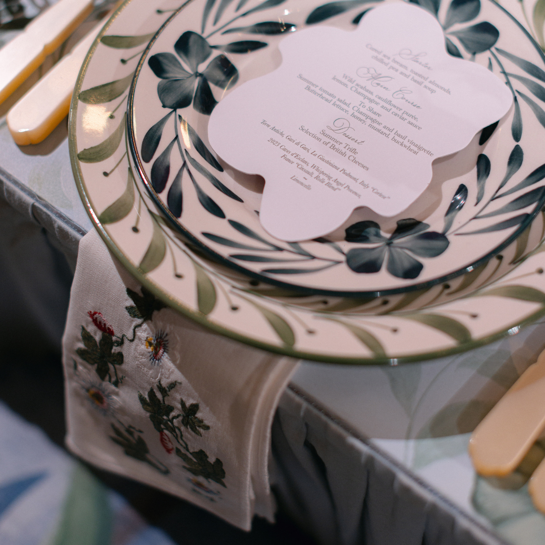 • Hand-Painted Plates – Unique artisan designs that add a bespoke element to your tablescape.