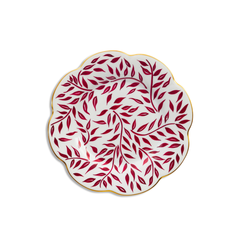 INSPIRED BY THE OLIVE GROVES OF THE MEDITERRANEAN, OUR BURGUNDY DINNER PLATE SHOWCASES THE PUREST WHITE LIMOGES PORCELAIN WITH STUNNING BURGUNDY OLIVE LEAVES. THE PERFECT EYE CATCHING ADDITION TO A FESTIVE TABLESCAPE.