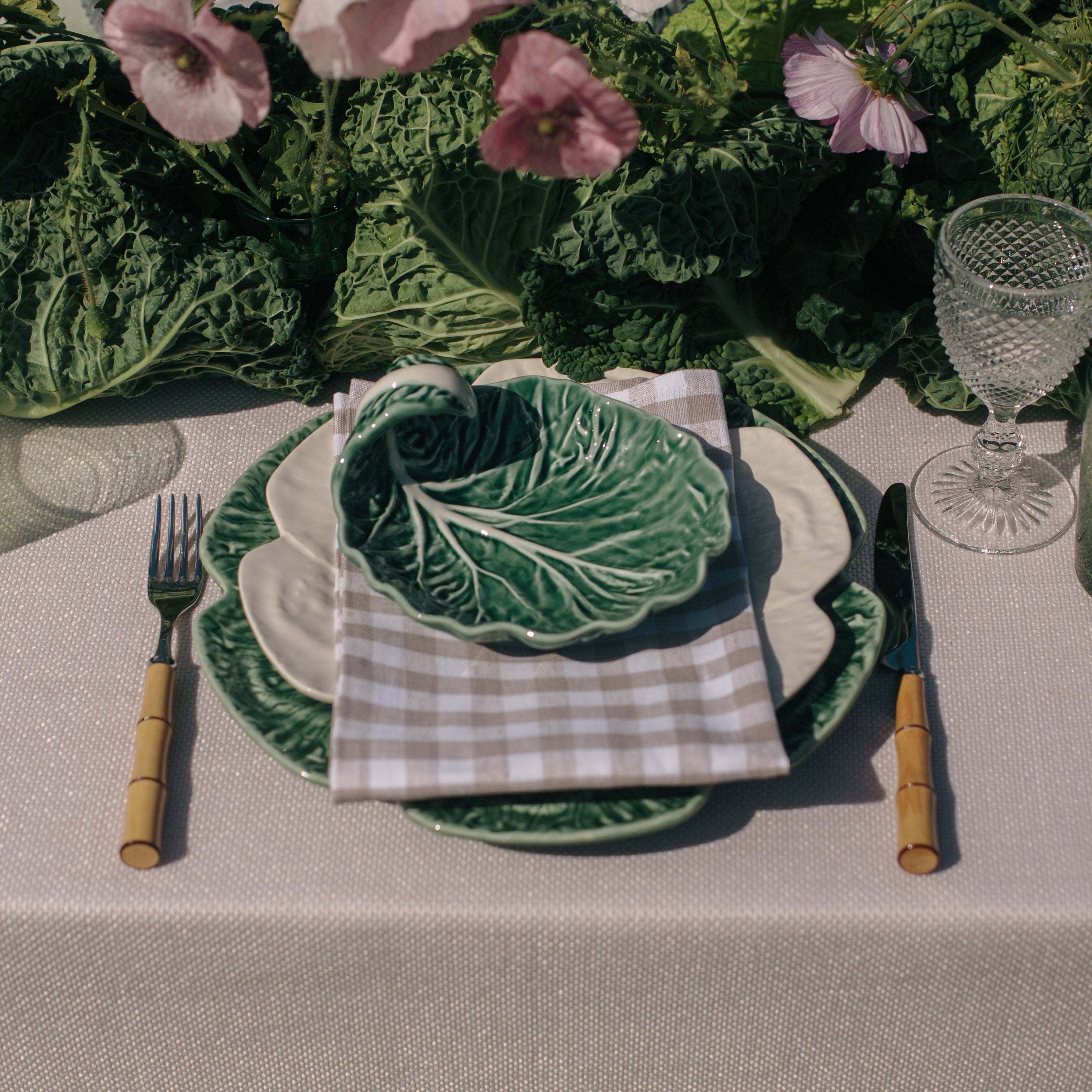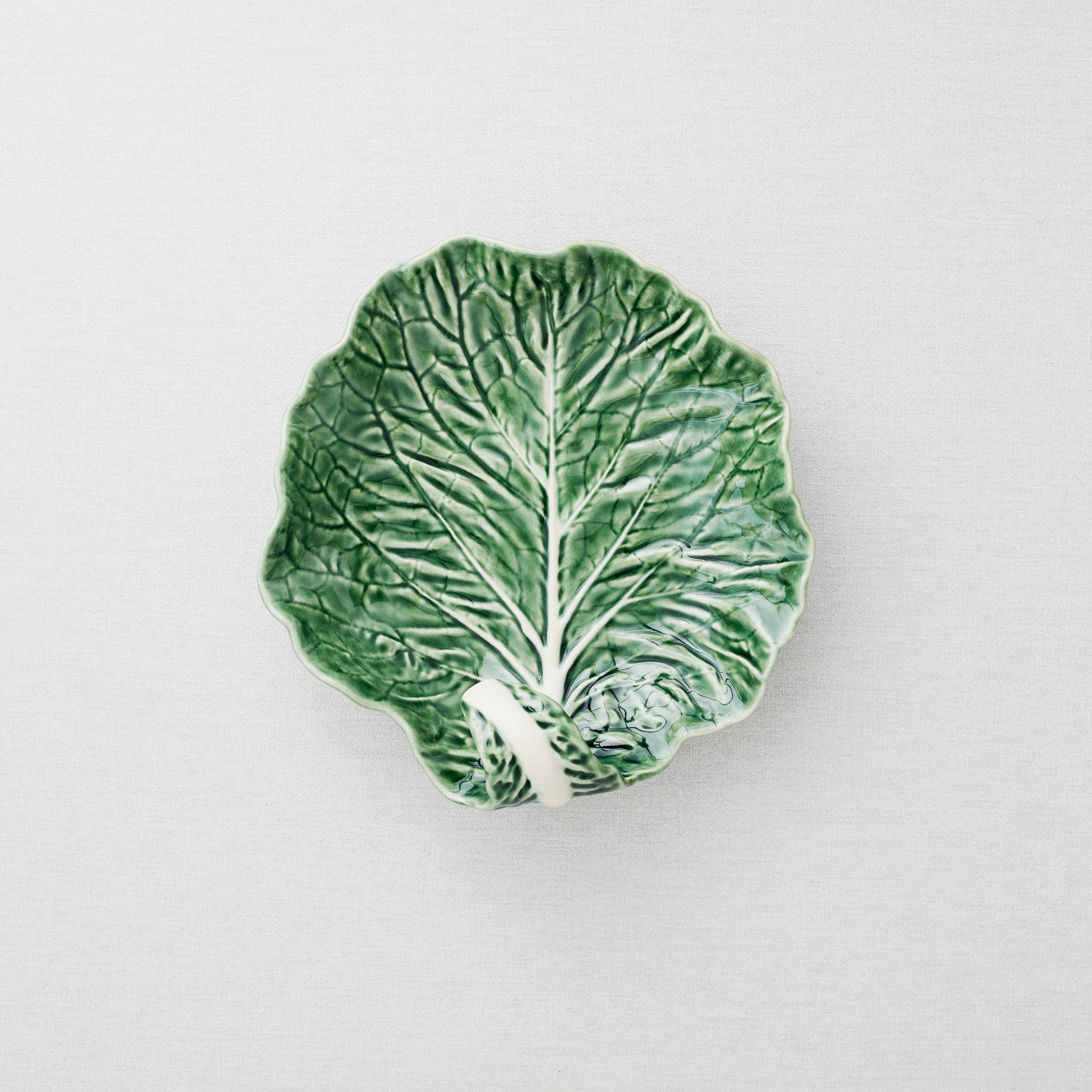 This medium size hand-painted green cabbage leaf dish will bring a fresh, nature-inspired look to your table. This design is also available in white.