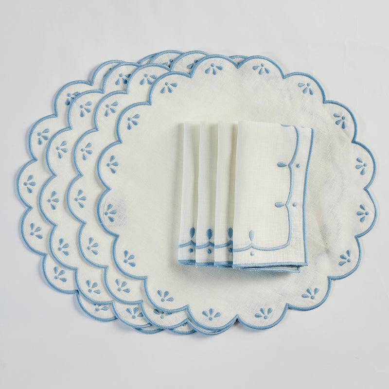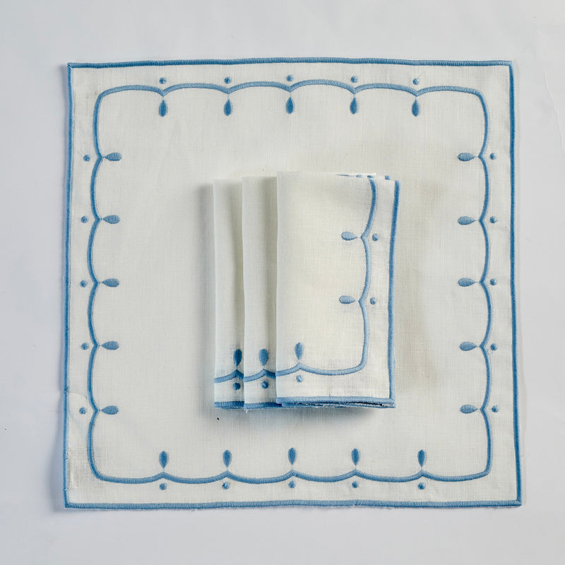 Peony White and Pale Blue Napkin (set of 4)