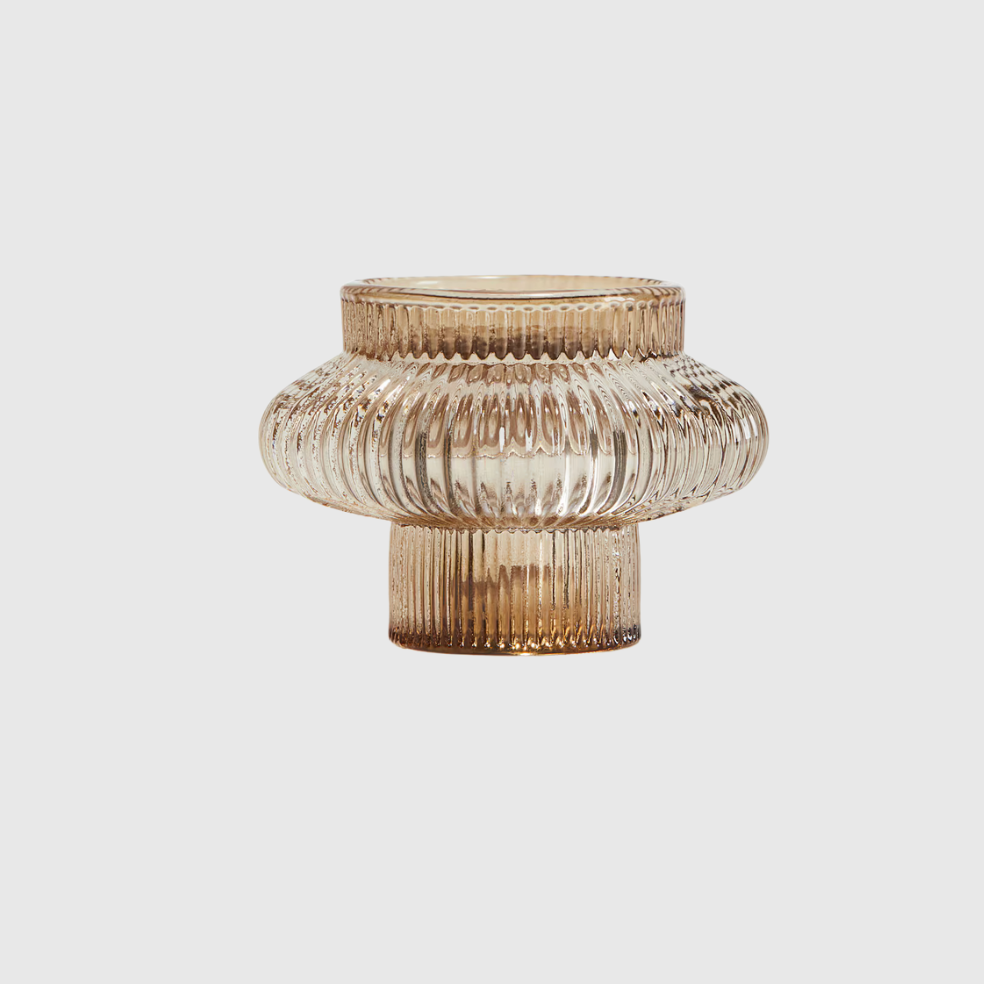 Small candle lantern in fluted glass suitable for both tealights and candles.