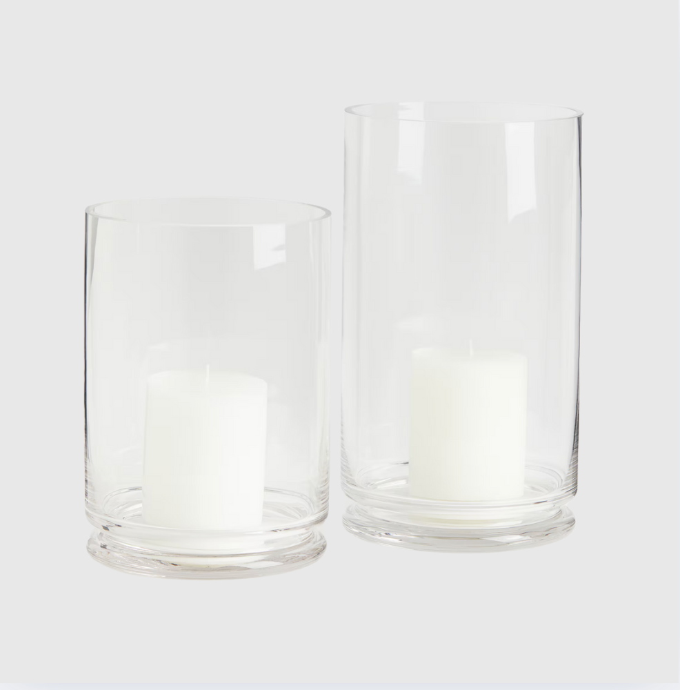 Elegant extra-large candle lantern in clear glass designed to hold a pillar candle.