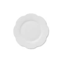 An elegant and classic white dinner plate with a subtle scallop edge from Royal Limoges, the oldest existing family-owned manufacturer of authentic Limoges porcelain.