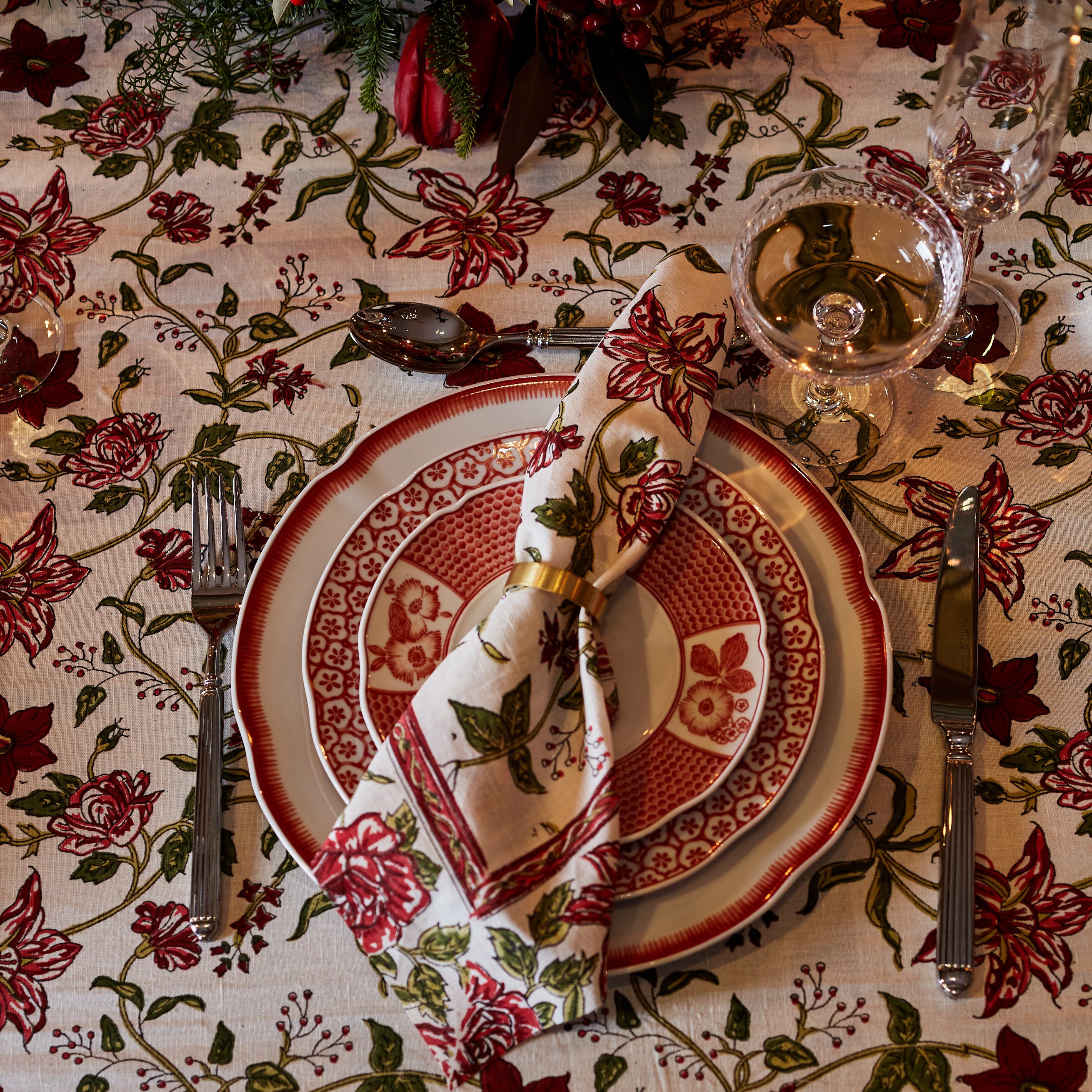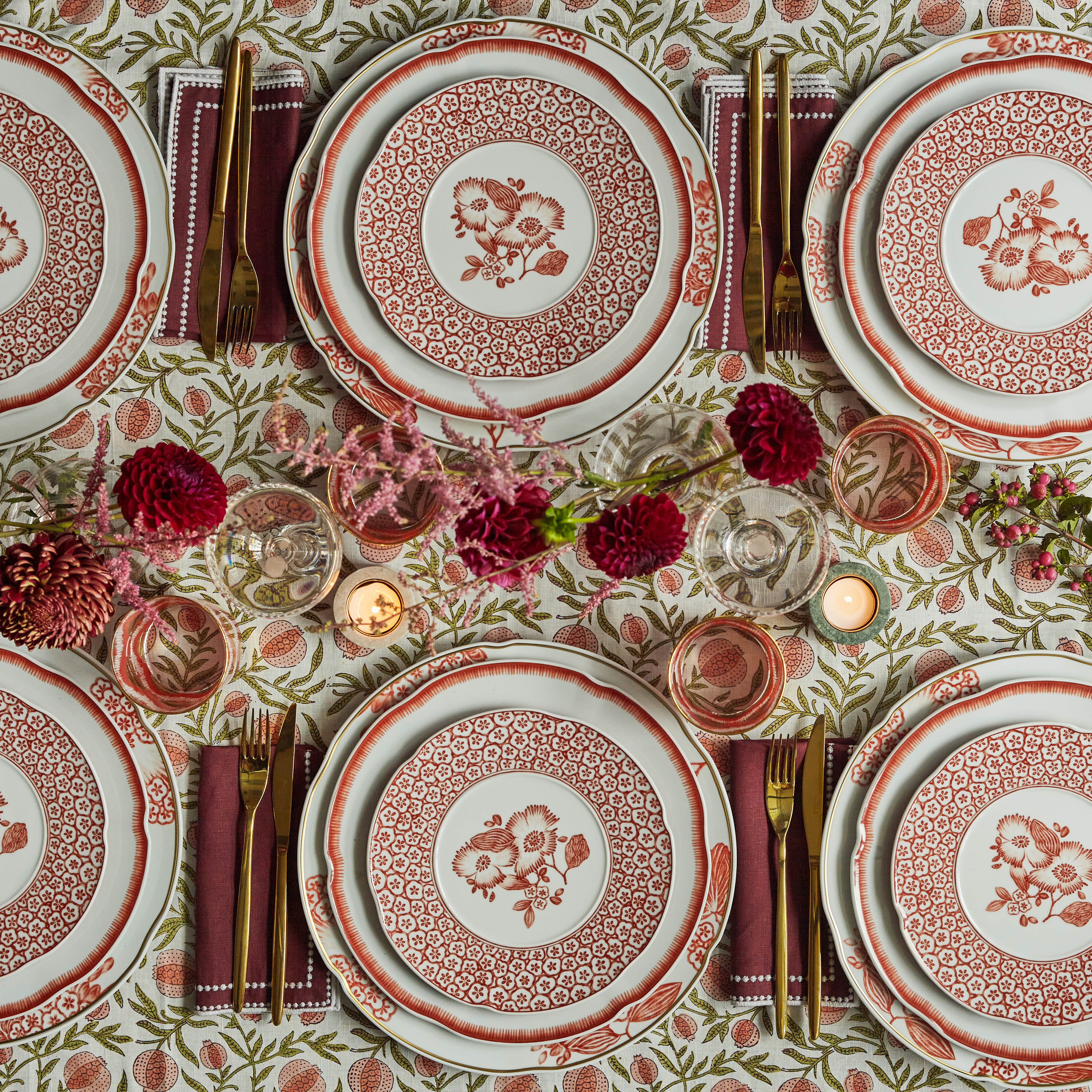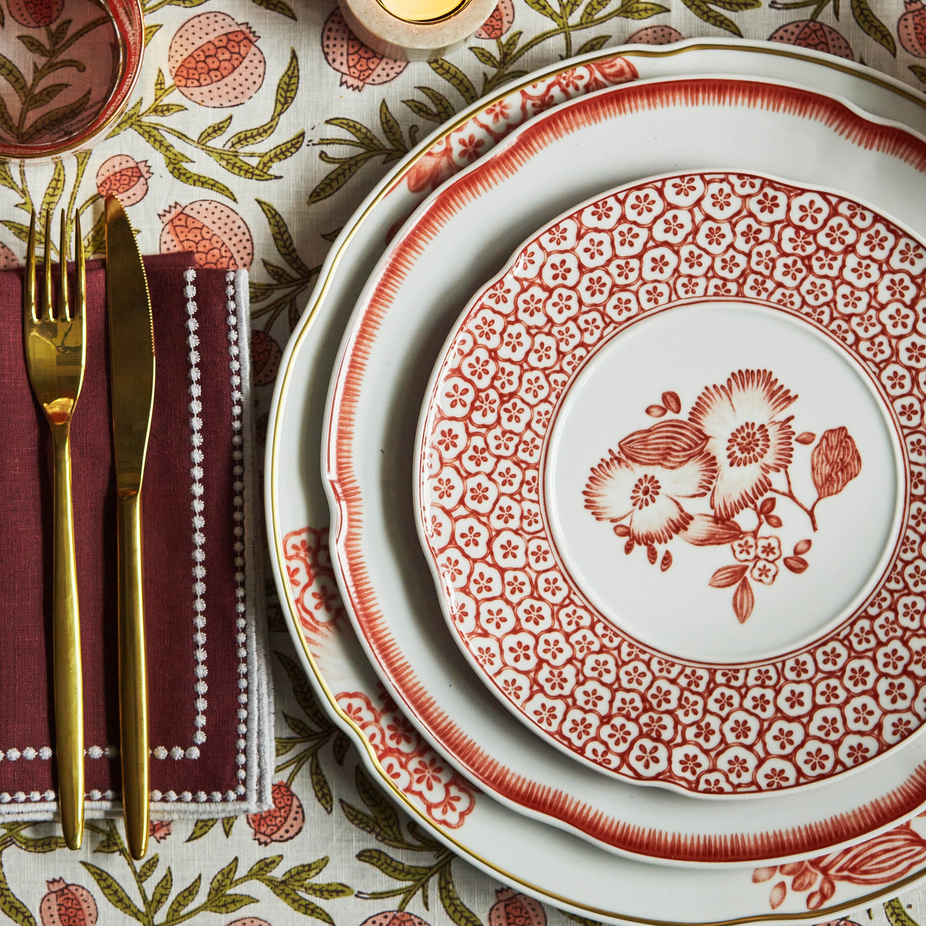 Decorated with floral motifs in a palette of warm and strong colours, the Coralina 3-piece dinner set reflects the passion that Oscar de la Renta felt for these natural shades represented in his haute couture clothing and accessories with his signature.